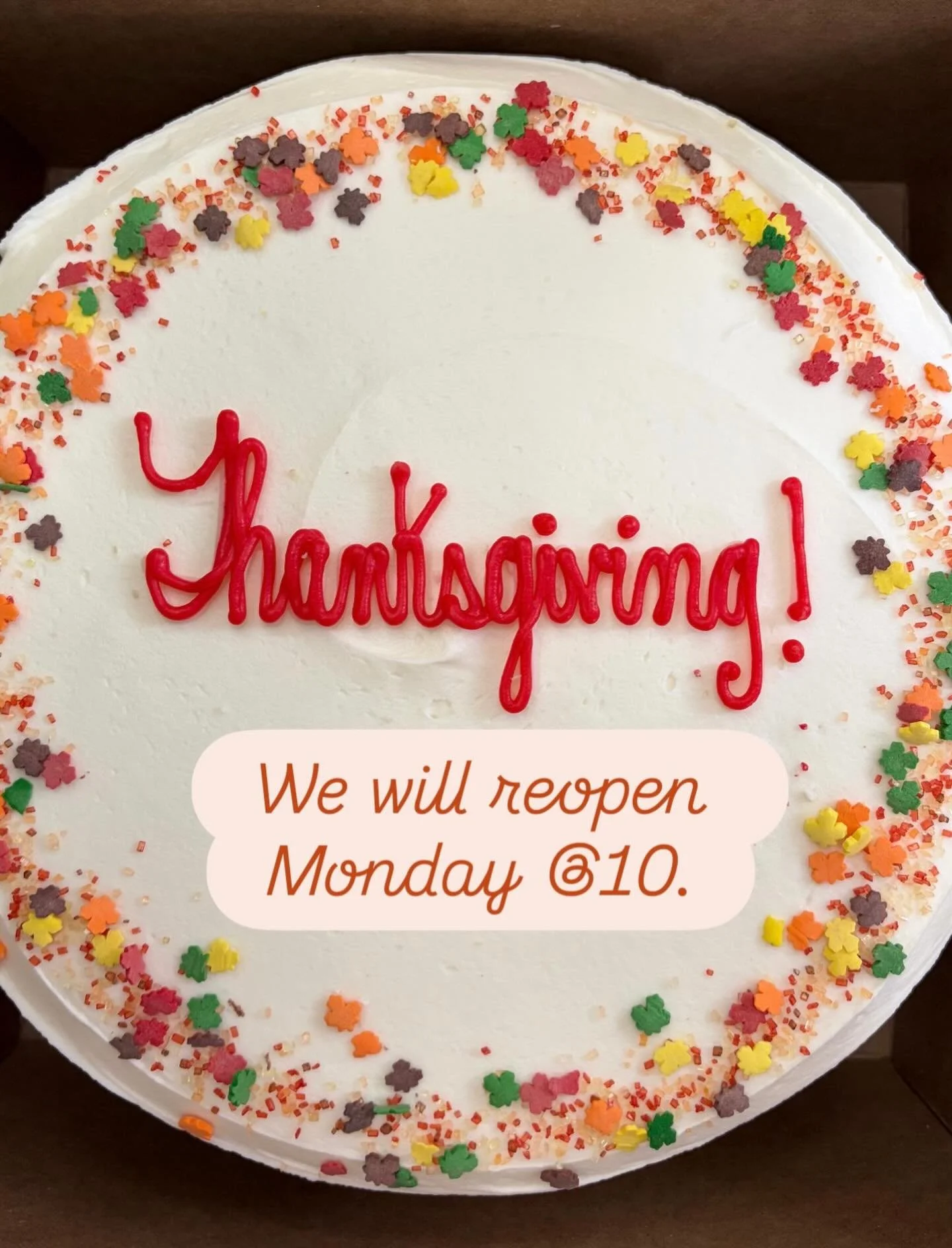 We will be closed Thursday 11/27 - Sunday 11/30 to recover from our busy Thanksgiving season - we’ll be back at it on Monday 12/1 at 10 am! See you then!