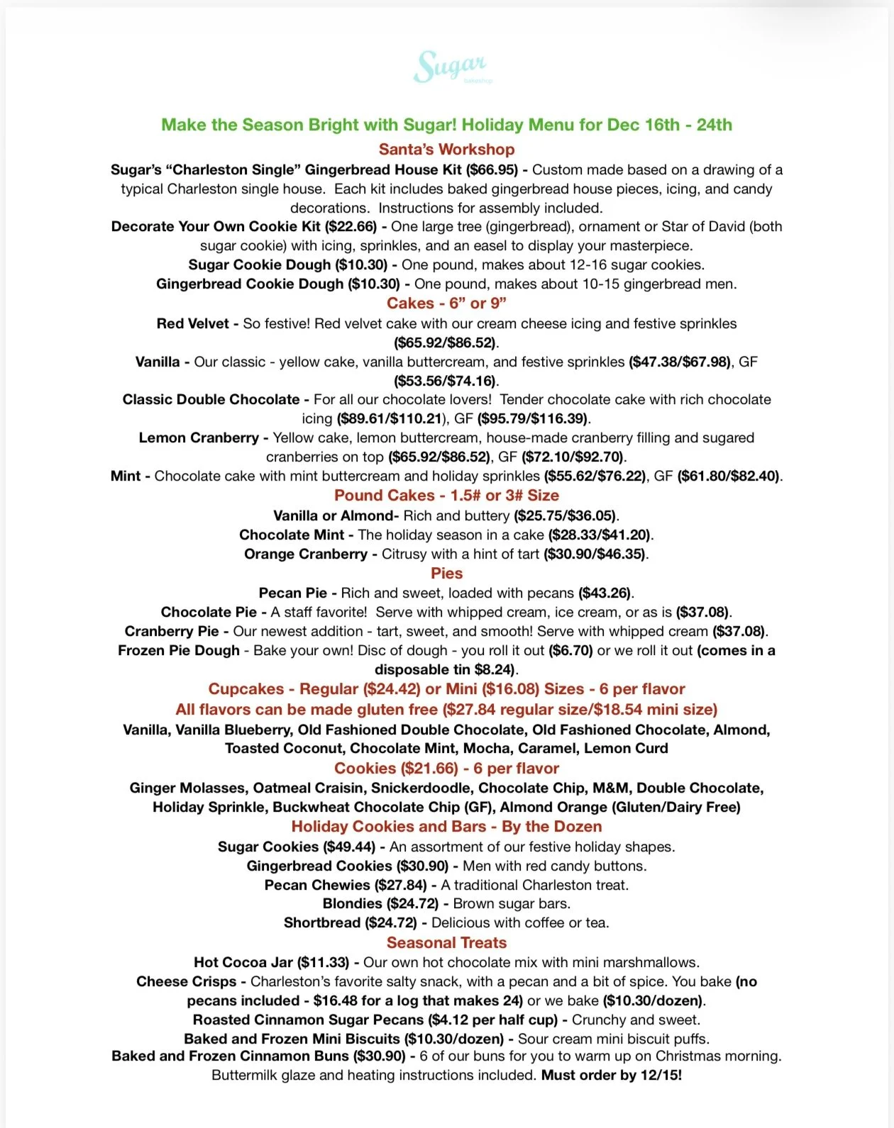 Any orders placed to be picked up between Tuesday, 12/16 and Wednesday, 12/24 MUST be ordered off of this menu - no exceptions! Get your orders in early, we will stop taking orders when we’ve booked up!