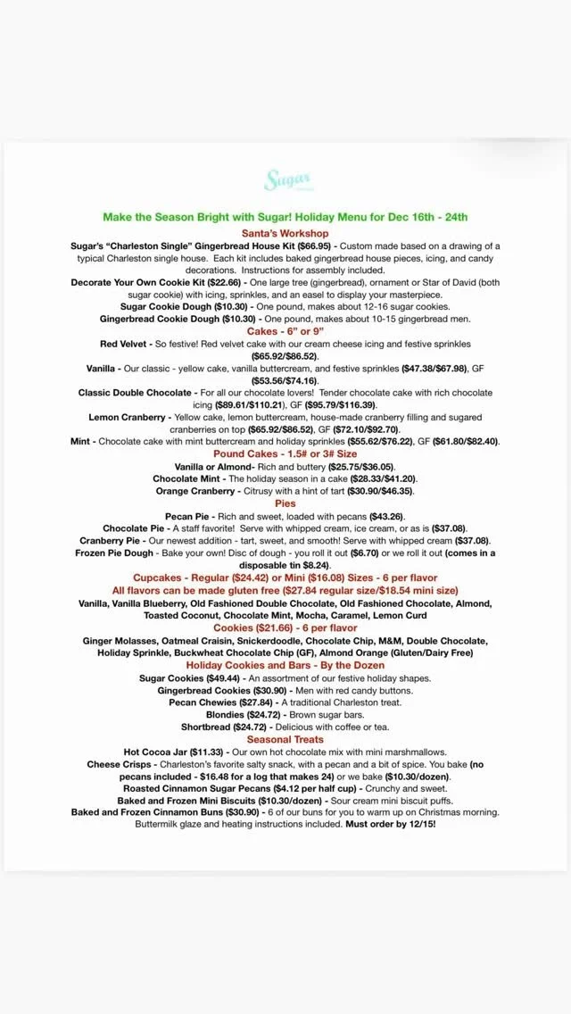 Any orders placed to be picked up between Tuesday, 12/16 and Wednesday, 12/24 MUST be ordered off of this menu - no exceptions! Get your orders in early, we will stop taking orders when we’ve booked up!